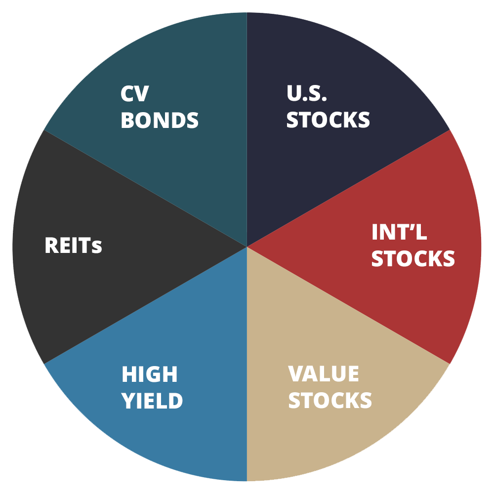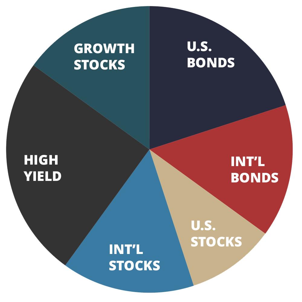 Investing involves risk, including the potential loss of principal. Past performance is no guarantee of future results. Investment decisions should be based on an individual’s own goals, time horizon, and tolerance for risk. Before investing, consider the funds’ investment objectives, risks, charges, and expenses. Contact your financial professional for a prospectus and read it carefully. Funds that focus on real estate investing are sensitive to deterioration in the economy or local real estate conditions, tenant defaults, property mismanagement, and changes in operating expenses including: insurance costs, energy prices, real estate taxes, and the cost of compliance with laws, regulations, and government policies. High-yield bonds are subject to greater credit risk and price fluctuations than investment grade bonds. Funds investing primarily in securities of the U.S. government and its agencies are not guaranteed by these entities. Investing in international markets involves risks not associated with investing solely in the U.S., such as currency fluctuation, potential political and diplomatic instability, liquidity risks, and differences in accounting, taxes, and regulations. Risks of international investing are generally intensified for investments in emerging markets. All charts are hypothetical and were used for explanatory purposes only. Actual results may vary.